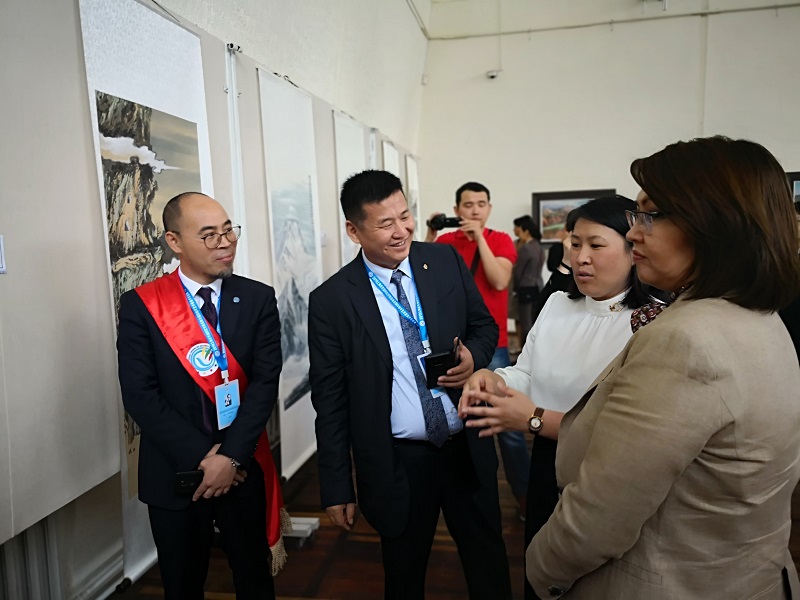 此次展览是为进一步烘托 2019 上合组织比什凯克峰会氛围,推动上合组织框架内人文合作、促进民心相通,由吉尔吉斯共和国政府与北京和平之旅文化交流中心共同主办,主要展示了来自25个国家的艺术家作品近一百余幅,中国共有15位画家参与此次展览,我校williamhill英国魏意苹老师携近年创作的《水色清心》、《净湖山色》等六幅中国画作品参加了此次展览。6月14日,展览在吉尔吉斯斯坦国家艺术博物馆隆重开幕,吉尔吉斯斯坦副总理奥穆尔别科娃、吉尔吉斯斯坦总统办公厅文化顾问苏丹.拉耶夫、北京和平之旅文化交流中心理事长邵常淳等人士参加了此次展览并致辞,吉尔吉斯斯坦总统索隆拜.沙里波维奇.热恩别科夫先生亲自为展览画册撰写了前言,整个展览吸引了众多观众并获得了很高的艺术评价。