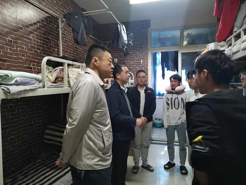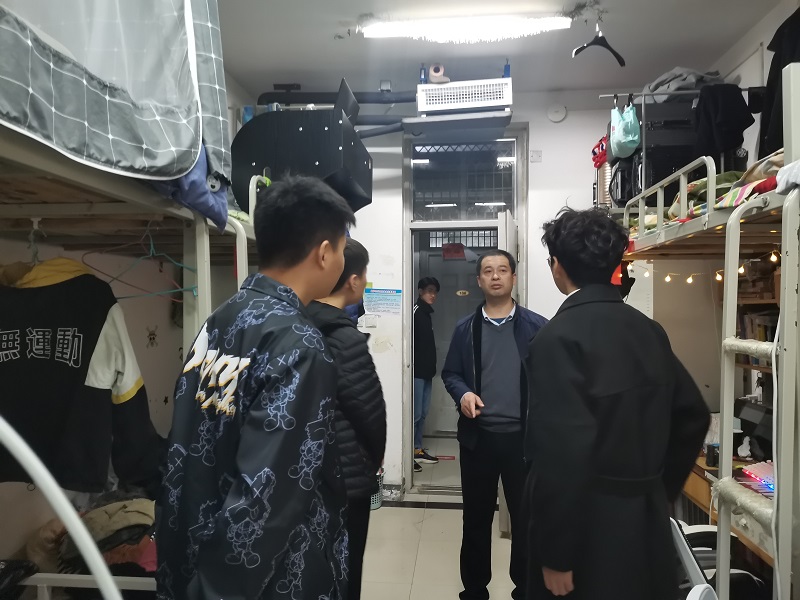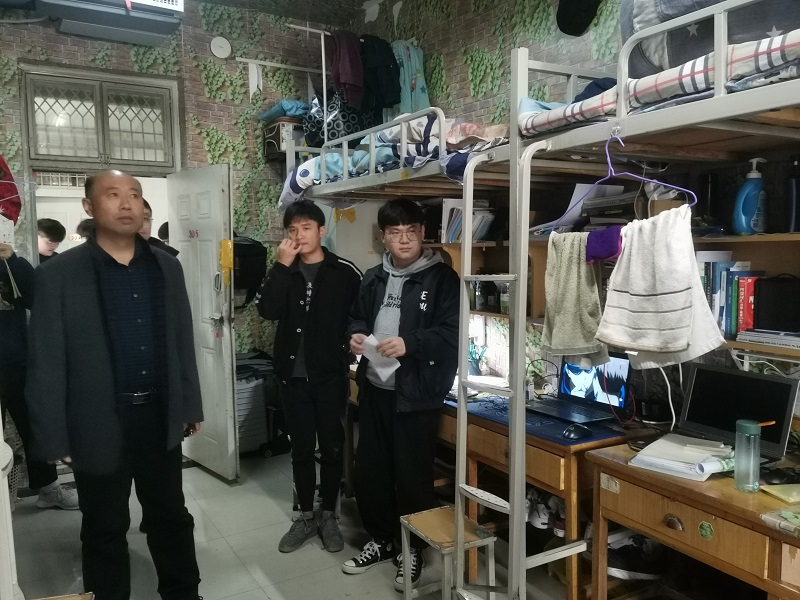 为落实学校《关于开展安全大检查的通知》要求,创建和谐文明安全的校园环境,维护宿舍安全,williamhill英国党委书记王在钦、党委副书记王友峰、团委副书记韩飞和全体辅导员老师在11月3日中午针对全院宿舍进行了排查,杜绝安全隐患。