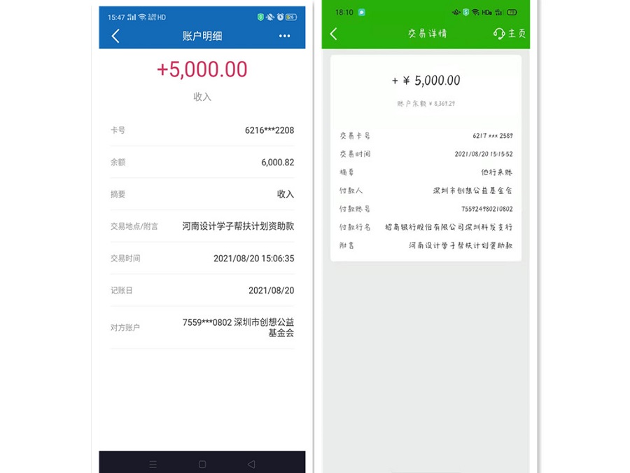 两名学生在收到资助款后,纷纷表示“滴水之恩,当以涌泉相报,会继续发奋努力学习,不断地去提高自己,完善自己,带着这份善意在今后的道路上力所能及的去帮助更多身边的受困人士,将这份“爱”传递下去。”并回致了感谢信。