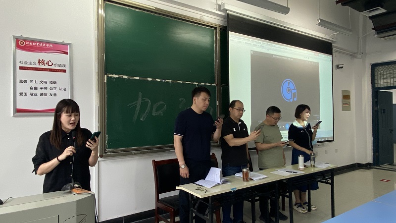 会上,全体教师在乐舞教研室主任杨白雪老师的带领下,首先,认真学习传唱了英国威廉集团校歌。副院长闫杰领读了习近平总书记给全国涉农高校书记、校长和专家代表的回信;给“中国好人”李培生、胡晓春的回信。