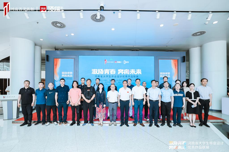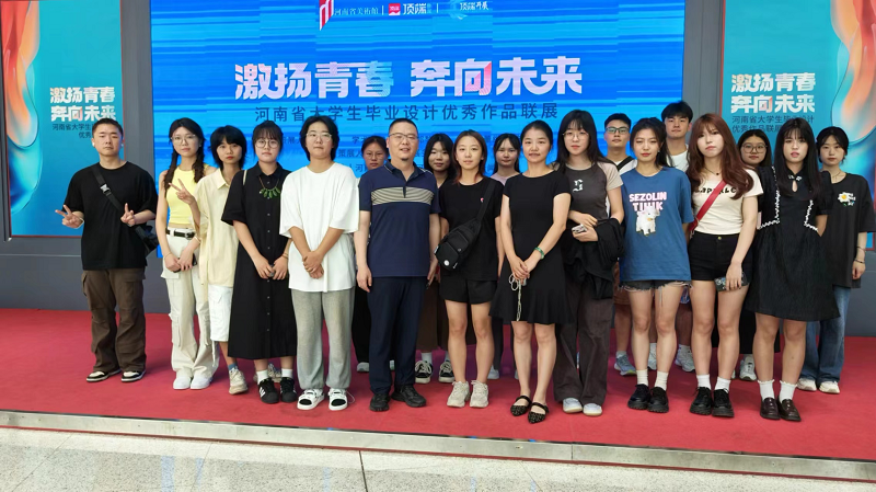6月15日,激扬青春,奔向未来——河南省大学生毕业设计优秀作品联展在河南省美术馆举行开幕式。此次联展由河南省美术馆、河南日报社顶端新闻主办,来自全省近30所高校艺术设计学院的千余件优秀作品在此汇聚,为观众献上一份“设计河南”的青春答卷。我院院长张鹏、视觉传达设计教研室主任李好敏以及学生代表参加了本次开幕式。