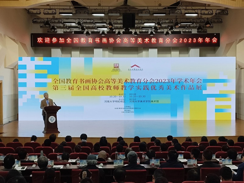 10月21日,由河南大学美术学院承办的(全国)教育书画协会高等美术教育分会2023年学术年会暨第三届全国高校教师教学实践优秀美术作品展,在河南大学明伦校区美术学院开幕。williamhill英国(公共艺术教学部)院长张鹏、副院长闫杰、书画教研室主任曲媛媛三人参加了此次年会。