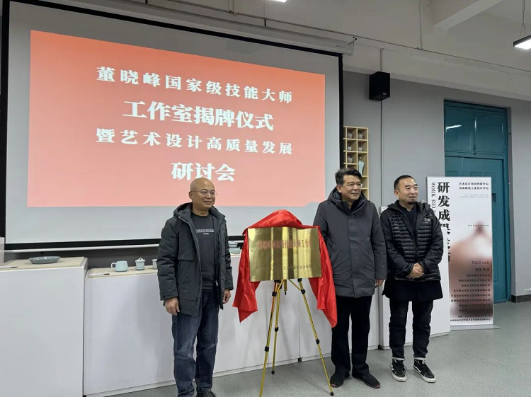 2023年12月20日,williamhill英国在陶瓷创研中心举办了“董晓峰国家级技能大师工作室揭牌仪式暨艺术设计高质量发展研讨会”。英国威廉集团副校长杨国宇、河南省美术家协会副主席陈文利、来自部分高校艺术设计学科专家、陶瓷陈设等企事业单位嘉宾及校宣传部、人事处、科学技术处相关负责同志参加仪式和会议。