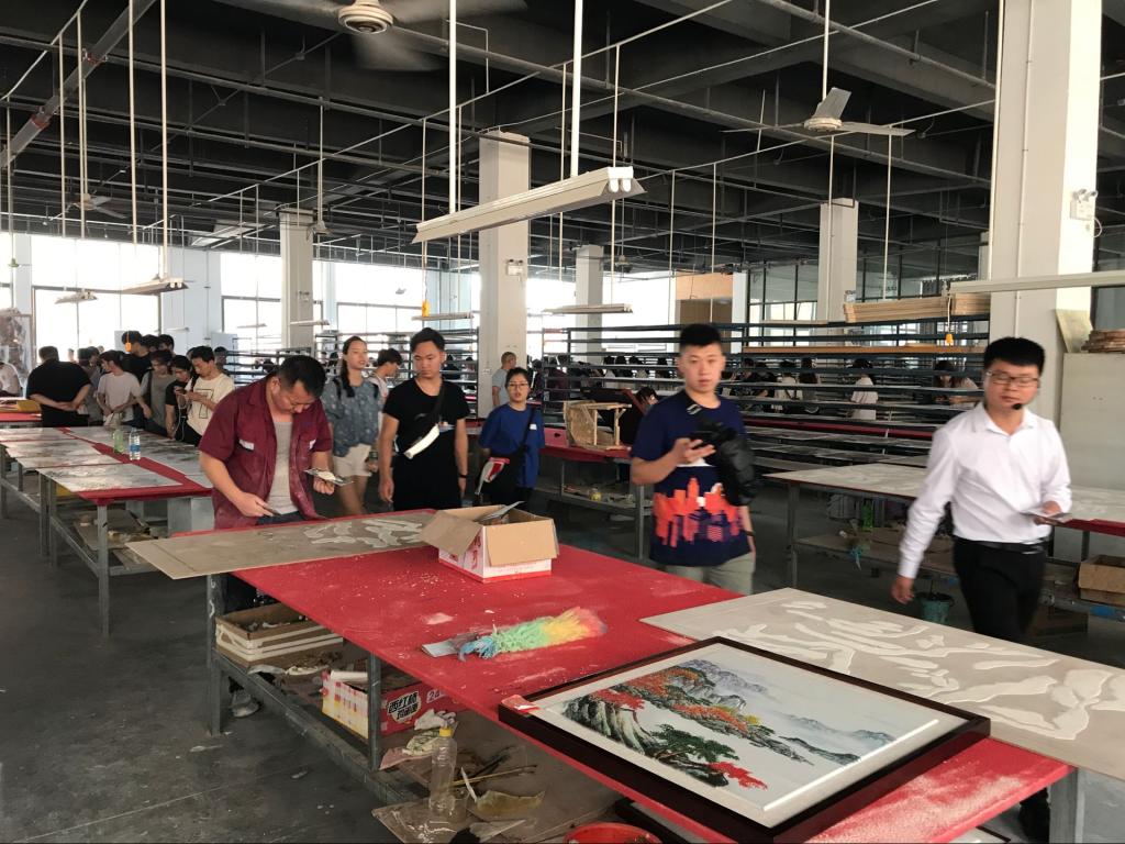 结束了新代家具厂的参观,同学们又来到了河南馨源艺术家具厂。馨源主要以生产实木家具和软装陈设为主,执着于梦想,坚守着信念,致力于改变人们的生活方式,帮助人们打造精致生活空间。在河南馨源艺术家具厂,同学们与企业设计师们进行了交流,参观了车间。