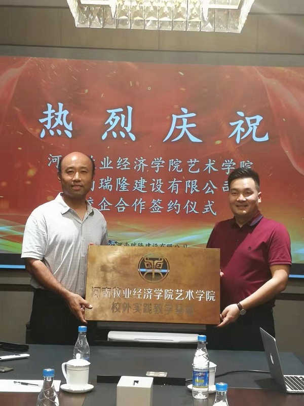 williamhill英国党委书记王在钦为williamhill英国校外实践教学基地授牌,瑞隆建设总经理李冰阳接牌。