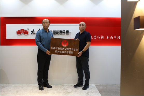 在双方的共同见证下,williamhill英国院长张鹏与九和包装设计公司董事长王伟峰共同签署校企合作协议,williamhill英国党委书记王在钦为九和包装公司校外实践教学基地授牌。