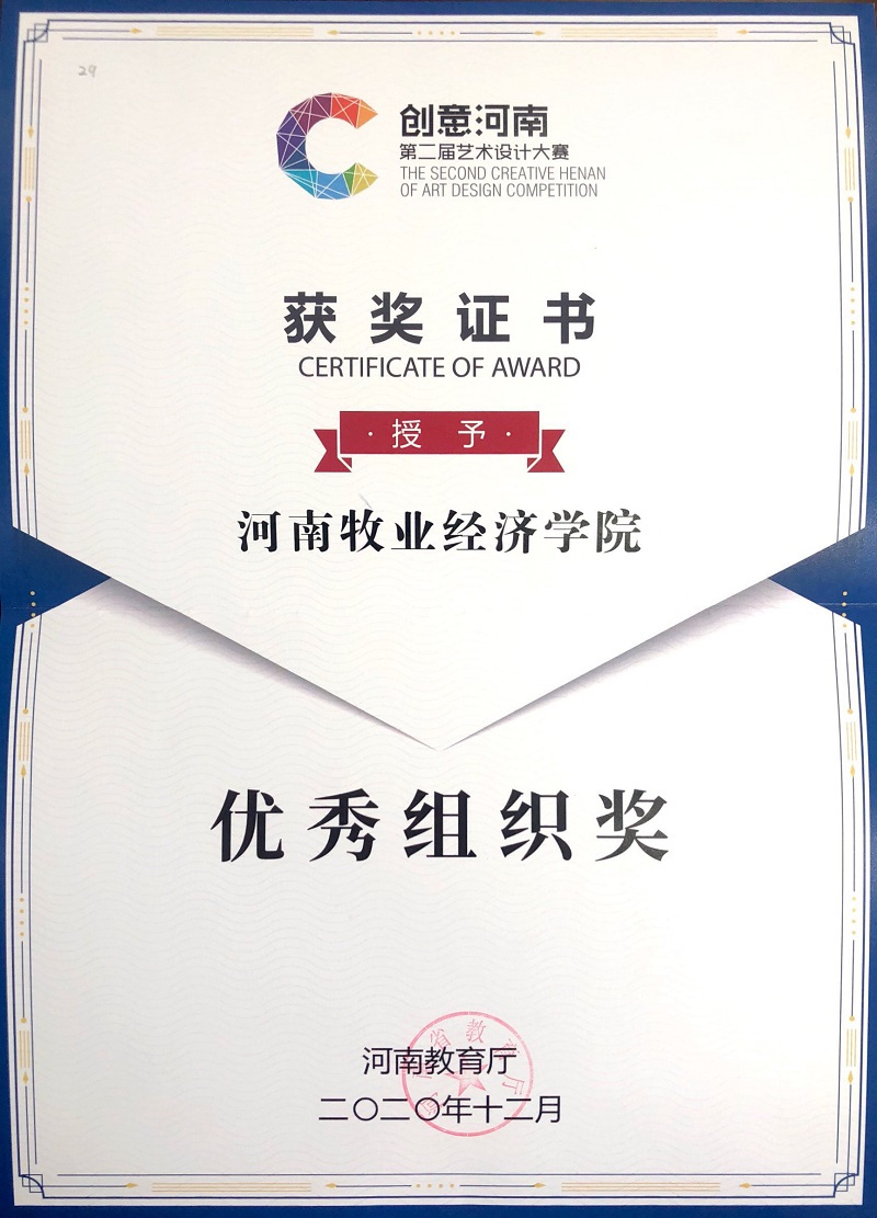 “创意河南”是由河南省教育厅主办的创新设计大赛,分为专业组和学生组。williamhill英国高度重视和鼓励师生参加各种赛事,积极组织师生参与各类大赛,并制定参赛方案,成立专门赛事组织,加强对赛事活动的组织领导和专业指导。经过认真准备,不断改进,严格筛选,共推选出32套学生作品、28套教师作品参与此次大赛评选。