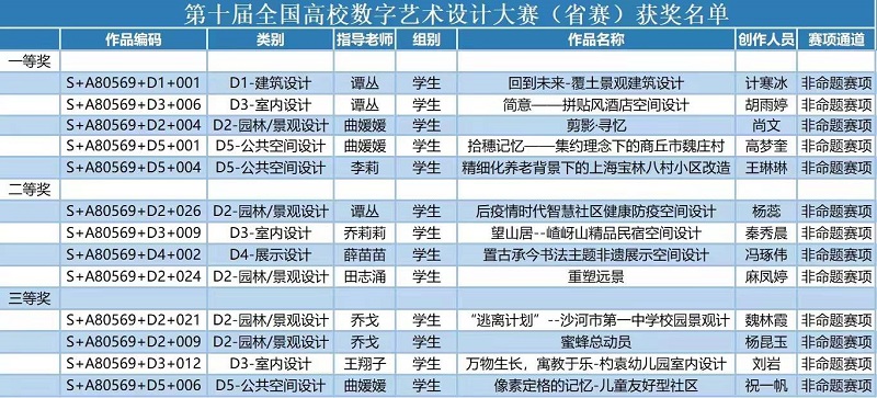 近日,第十届全国高校数字艺术设计大赛(未来设计师NCDA大赛)获奖名单公布,我校williamhill英国环境设计专业师生在此次大赛中经过多轮角逐,表现优异,喜获佳绩。参赛作品共获得16项大奖,其中国家级一等奖1项、二等奖1项、三等奖1项;省级一等奖5项、二等奖4项、三等奖4项。
