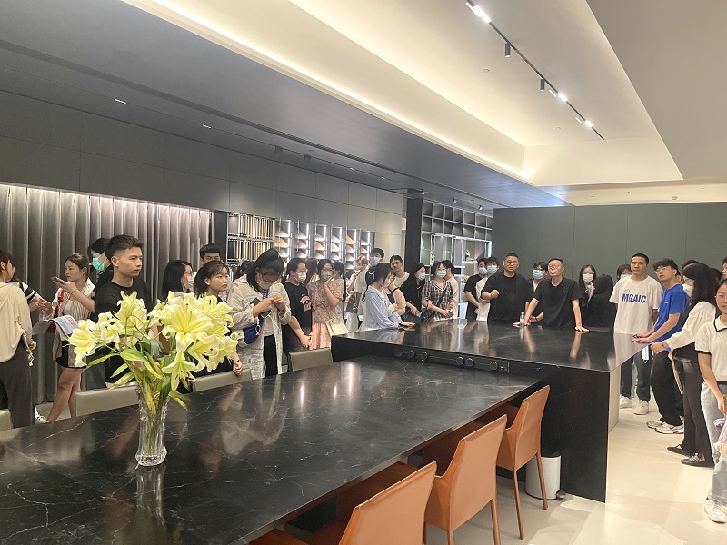 讲座之后,王东伟老师带领师生一行来到了“青岛一木”整体定制的销售展厅,企业负责人和经验丰富的销售人员热情接待,耐心认真地给同学生们进行讲解,让学生从材料形态、类别和应用的广泛角度来理解材料的形成和施工工艺的操作过程,拓宽了学生们的专业视野,丰富了专业知识。参观之后,各班学生根据《装饰构造与材料》的课程安排,分组对不同材料类别又进行了自主调研活动,此次活动到此圆满结束。