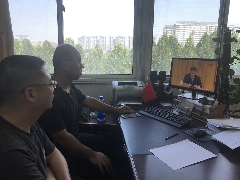 10时整,表彰大会正式开始。同志们随着仪式的开展,同唱国歌,集体肃立,向新冠肺炎疫情牺牲烈士和逝世同胞默哀。颁授仪式中,“共和国勋章”获得者钟南山,“人民英雄”国家荣誉称号获得者张伯礼、张定宇、陈薇先后走上主席台,同志们在屏幕之外热烈鼓掌,向人民英雄们致以最崇高的敬意。当患有渐冻症的张定宇迈着蹒跚的脚步上台领奖时,每位同志都激动万分热泪盈眶,观看结束后大家内心久久不能平静。