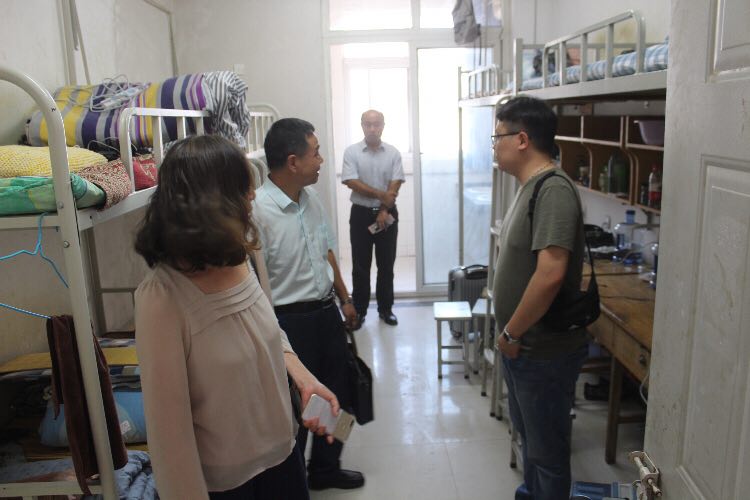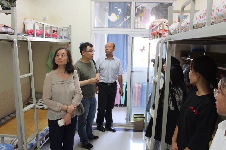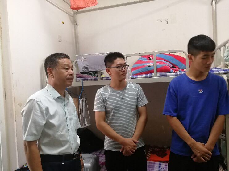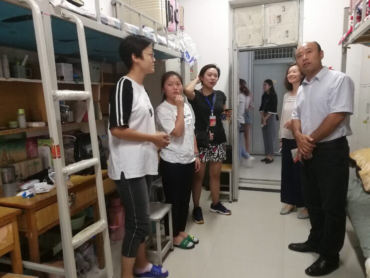 9月9日17时,williamhill英国党总支书记王在钦、williamhill英国主任田秀群、党总支副书记贾艳艳、团总支书记韩飞、18级新生辅导员李巍然、王霜、李好敏以及助理班主任等一行人来到新生宿舍,看望新生,王书记、田院长代表院系领导老师对新生的到来致以问候,贾书记也不忘嘱咐大家用电用水安全、拒绝推销、防止电信诈骗等相关安全注意须知。