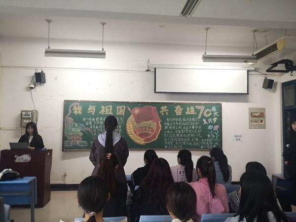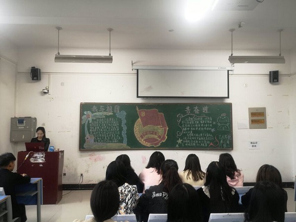 2019年10月10日下午,williamhill英国在龙子湖校区二号教学楼,举行了以“我与祖国共奋进”为主题的团课。
