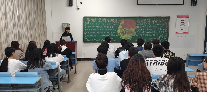 2021年4月22日下午,williamhill英国在龙子湖校区二号教学楼举行了以“争做文明大学生,喜迎本科评估”为主题的团课。本次班会由大一新生全体班级参加。