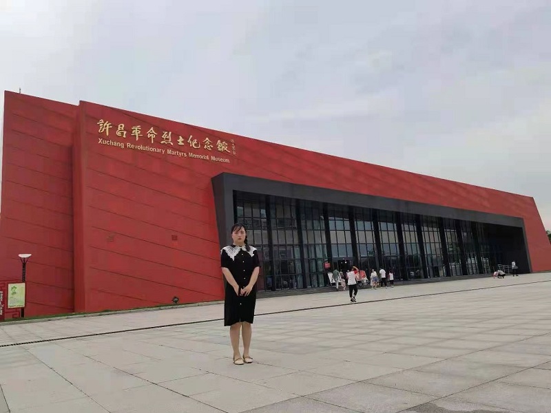 许昌烈士陵园位于河南省许昌市塔东路,现有革命烈士纪念馆、革命烈士纪念碑、烈士公墓、义斋亭四个纪念区。学生曹畅首先来到革命烈士纪念馆,通过馆内影像资料及工作人员的详细讲解,怀着无比崇敬的心情参观了抗战文物、战斗事迹展览等,对维护国家主权和世界和平牺牲的烈士们有了更直观的了解,他们舍已为人,为维护国家尊严、人民幸福献出了青春和热血,这些历历在目的历史,作为中华儿女应时刻铭记,不忘初心,牢记历史。站在革命烈士纪念碑前,外形是两支靠在一起的汉阳造步枪,象征着解放许昌的两支劲旅——华东野战军和中原野战军。碑体上“革命烈士永垂不朽”的金色大字由朱德元帅题写。学生站在纪念碑前,深深地感受到今天来之不易的幸福生活,进一步增强自己的使命感、紧迫感、责任感。感受峥嵘岁月的同时,重温和加深了对党史的了解和理解,更加汲取了“不忘初心,牢记使命”的精神动力。