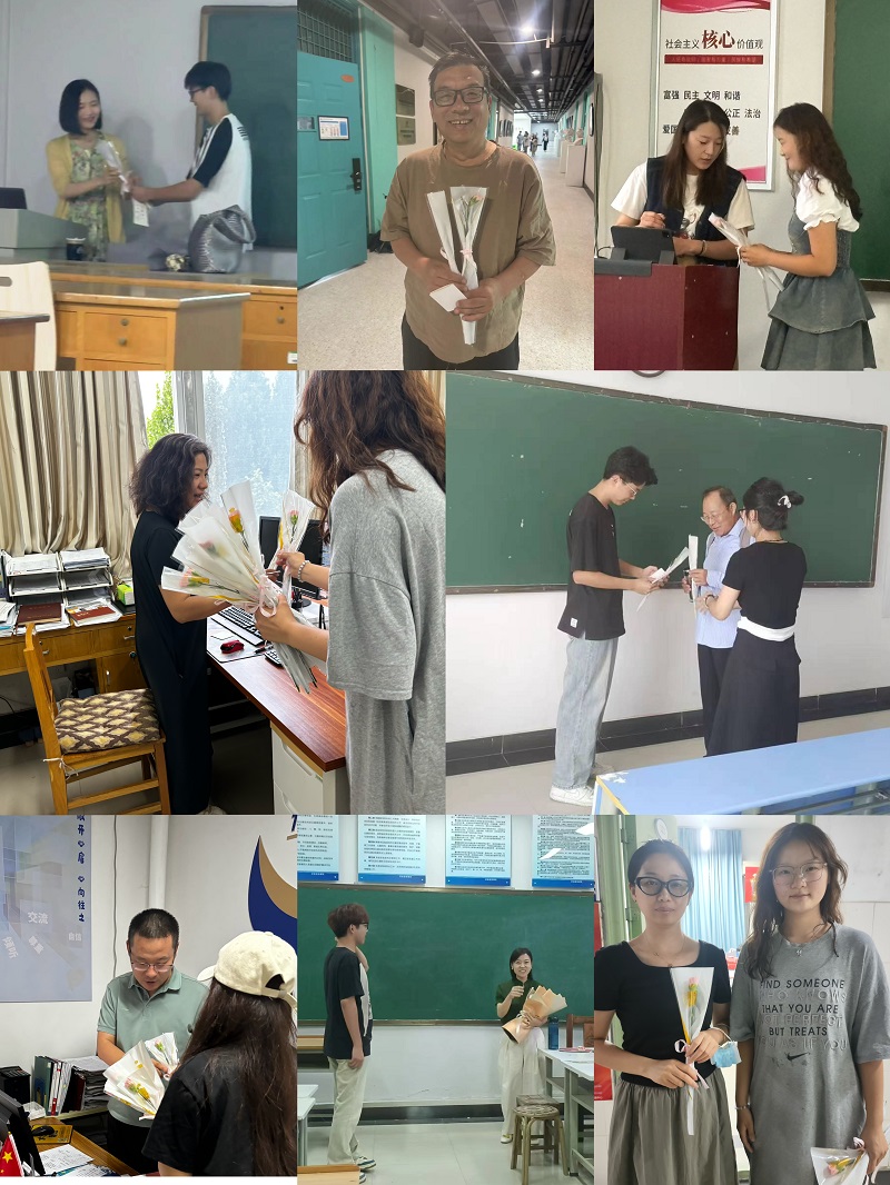 鲜花赠恩师,话语寄祝福。教师节送祝福不仅是学生向老师表达感激之情的一种方式,也是营造良好师生关系的一个重要环节。献上一束鲜花、送上一句祝福、说出自己最想对老师说的话,将真情实感融入到每一句话、每一束花中,向老师们表达自己的感恩之情和深深的祝福。9月9日至10日,习近平总书记在全国教育大会中提到:“教育是强国建设、民族复兴之基”“尊师重教是中华民族的优良传统。”学院举办此次活动旨在激励全体教师不忘初心,牢记教书育人的使命,继续为祖国培养更多优秀的接班人。大家纷纷表示:要认真学习领会和贯彻落实习近平总书记重要讲话精神,围绕立德树人根本任务,培养德智体美劳全面发展的社会主义建设者和接班人,奋力在建设具有强大的思想引领力、人才竞争力、科技支撑力、民生保障力、社会协同力和国际影响力的教育强国中担当使命,为中国教育事业添砖加瓦。
