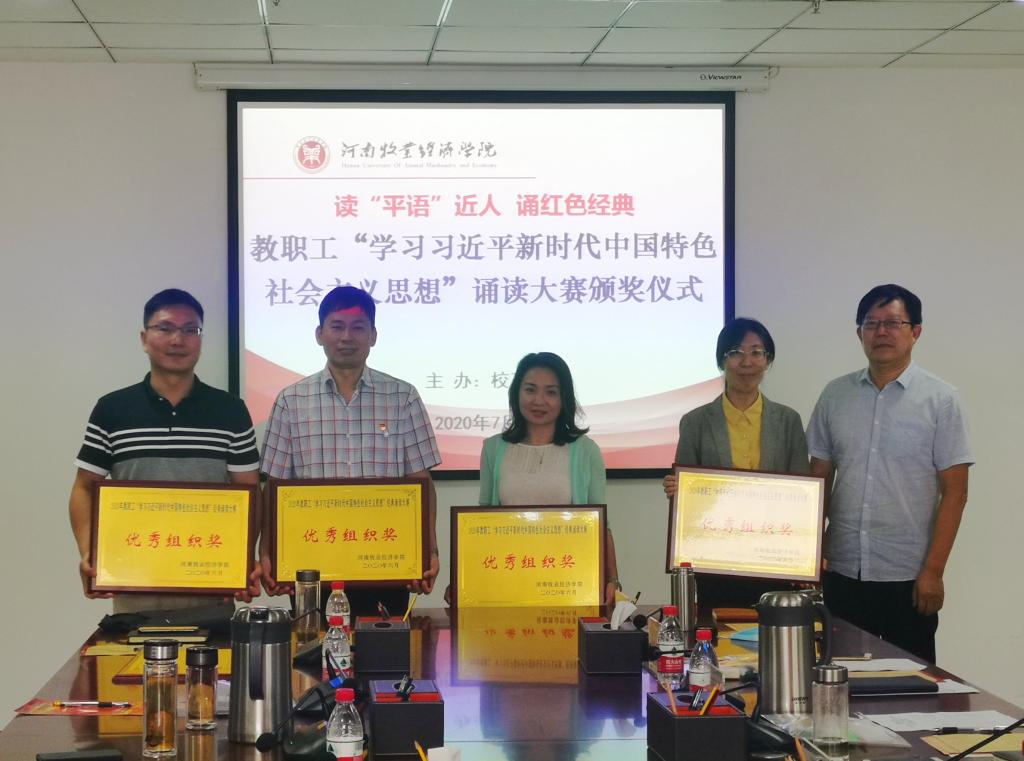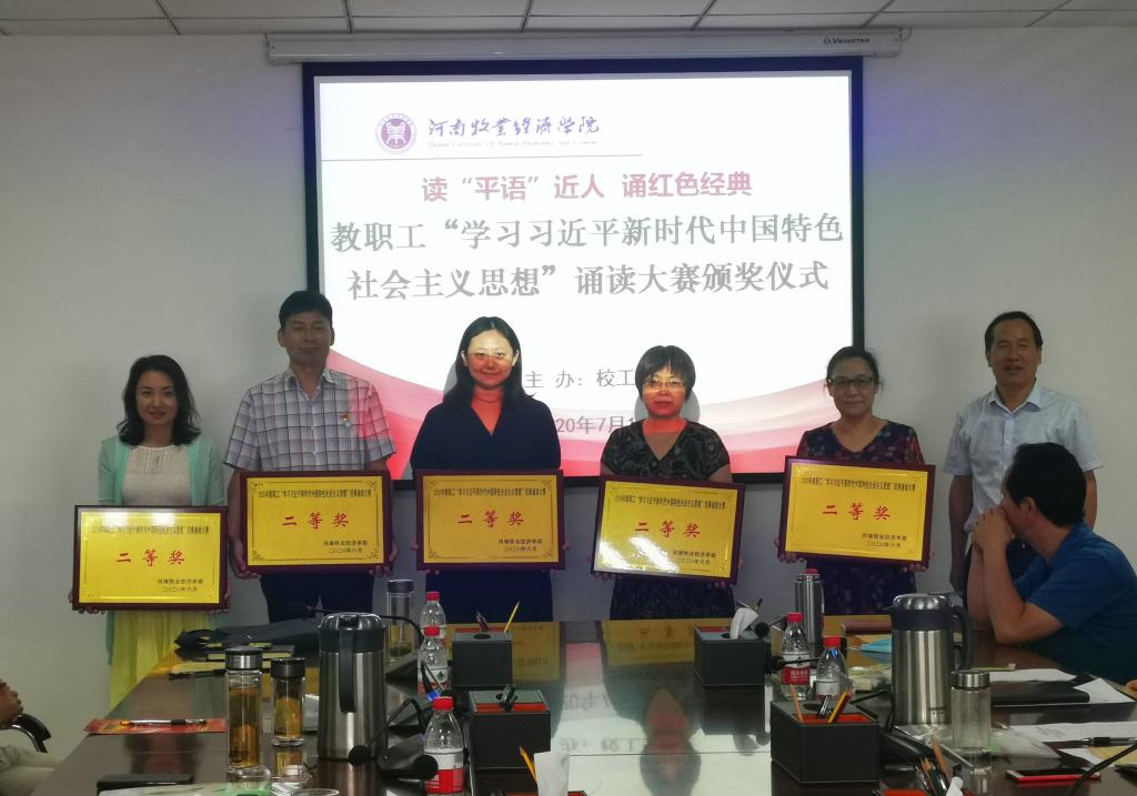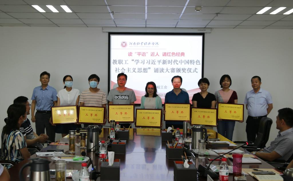 根据中共河南省委宣传部、河南省总工会《关于开展河南省职工“学习习近平新时代中国特色社会主义思想”经典诵读活动的通知》(豫工文〔2020〕13 号)文件精神,williamhill英国分工会在全体教职工中广泛宣传,组织大家积极参与,共向校工会推荐报送了9件诵读视频作品。经过专家组集中观看、认真评审,williamhill英国分工会谭寅峰老师的《祖国啊,我亲爱的祖国》荣获二等奖,陈胜蓝老师的《黄河畅想》、韩飞、王霜老师合作的《念奴娇·追思焦裕禄》以及园林教研室集体创作的《人不负青山青山定不负人》等荣获三等奖。williamhill英国分工会荣获优秀组织奖。