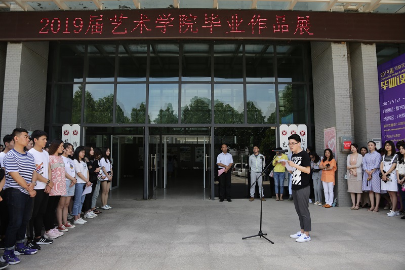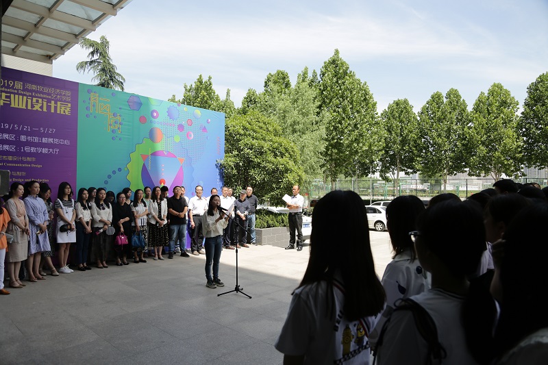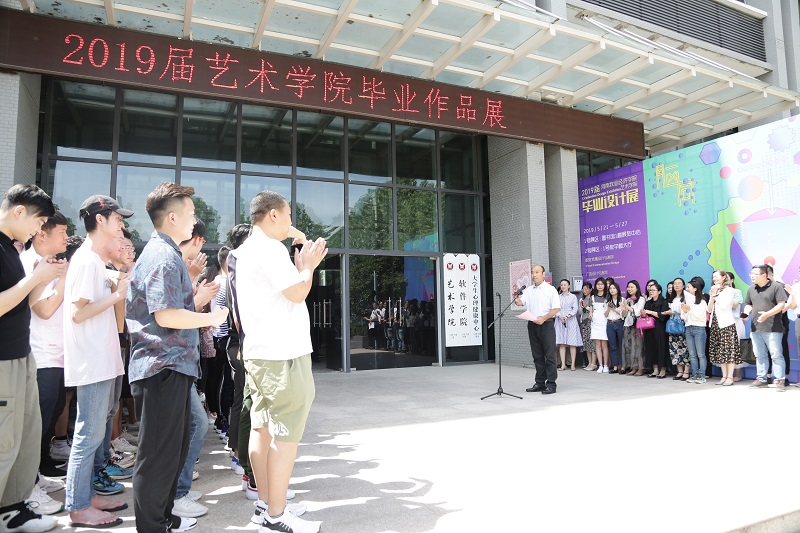 5月21日上午,williamhill英国2019届毕业设计作品展开幕式在龙子湖校区1号教学楼门前广场顺利举行。williamhill英国班子成员、教师代表以及2019届毕业生500余人参加,williamhill英国党总支书记王在钦主持开幕式并宣布展览开幕。